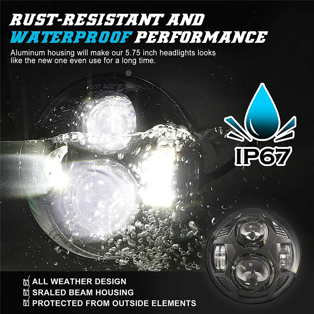 【NEWEST】5.75” High/Low Beam Headlight, Waterproof IP67.